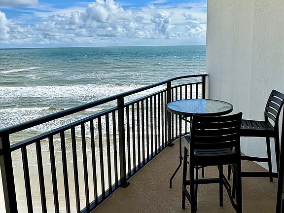 Atlantic Oceanfront condo in beautiful Daytona Beach Shores. Spectacular oceanfront views from the wrap around balcony and multiple large windows. Spacious two bedroom and two bath home. Private west facing balconies from both bedrooms. Master has additional balcony facing oceanfront via the wrap around private balcony. Master on suite has large walk-in closet, deep soaker tub w/ shower and separate vanity sink area. Guest bedroom has medium size walk-in closet and full bath. East facing balconies have view of inlet waters, Daytona Racetrack stadium and sunsets. Full laundry room. Kitchen and dinning room has a spacious breakfast bar with lots of room for entertaining. Renovations include: luxury vinyl plank flooring (wood style), new water heater, new AC/Heat system, bathroom fixtures, modern barndoor in Master, new refrigerator, new oven, new microwave, new kitchen hardware and fresh paint colors. Building has new pool, deck, lawn and firepit with beautiful ocean views. Condo is allowed to be rented out 2 weeks or longer. Owner must follow the COA board's rules when listing to rent.
