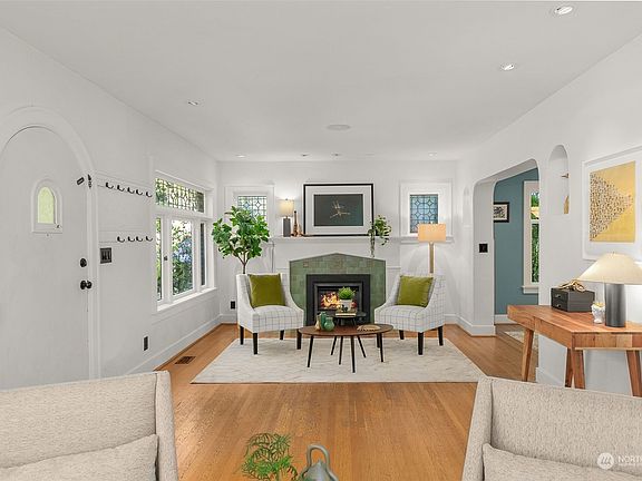 Tastefully renovated Tudor with character intact. The updated fireplace offers a warm welcome with cozy reading nook, a living room that flows into the dining and kitchen (with commercial range)immediately ready for hosting. All the space you want with impressive outdoor living/dining on huge deck and/or patio. A jaw dropping primary suite with double walk-ins and a spa like bath. Downstairs offers recreation, wine storage, private guest space and access to the backyard. Mountain views, air conditioning, and built-in speakers throughout + workspace in the garage. The fenced yard provides a safe, park-like setting. Moments to Columbia City, Georgetown, and of course Beacon Hill.