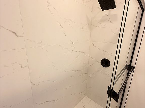 Remodeled Bathroom: Contemporary finishes and fixtures.