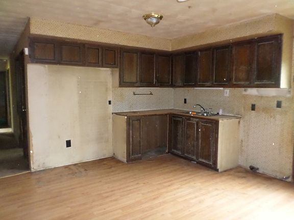 This ranch style home will need work, but it has potential. Roomy floor plan with 2 large living rooms, a large eat in kitchen, 3 bedrooms and 2 baths. The master bedroom has a private bath. The guest bath also has the laundry hook up. Big private backyard.