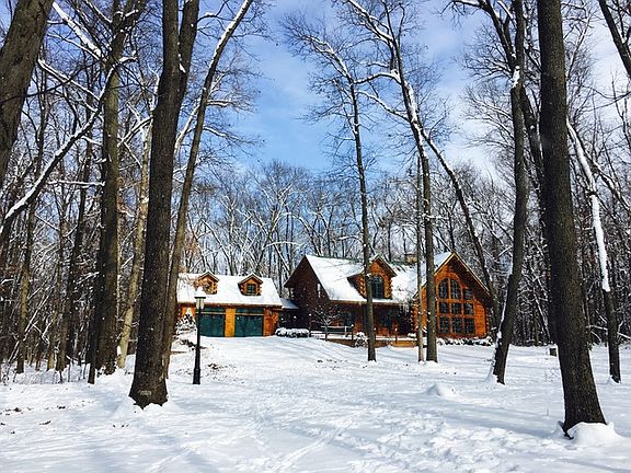 SPECTACULAR LOG CABIN RETREAT APPROX 90 MILES SOUTH OF CHICAGO! Custom Built on 5 Wooded Acres-Gorgeous Views-Bright & Airy Light with Floor to Ceiling Windows-Full Walk-Out Basement with 10 Ft Ceilings, Roughed-In Bath, Heated Floors & Wood Stove Install Ready-3 Story Garage with Workshop & Stairs to Attic-Large Screened Porch-Paver Patio-Large Wrap Around Deck Gives 360 Views of Wildlife Year Round- 22 ft. Stone Fireplace. 1st Floor Master Suite Features Double Vanity, WP Tub, and Sep.Shower-Kitchen with Custom Cabinetry & Granite Island w/ Prep Sink-Geo Thermal Heating for Energy Efficiency-Central Vac-Metal Roof-Handicap Accessible-Call Today for Private Showing!