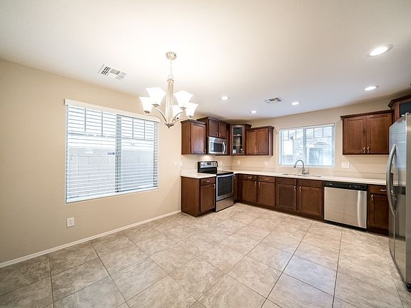 NO ADMIN UPFRONT OR MONTHLY Beautiful 3 bedroom, 2.5 bath home in the highly desirable Cove at Vincenz in Gilbert! This home includes 18'' tile throughout the bottom floor. Eat-in kitchen boasts upgraded quartz counter tops and staggered cabinets with crown molding and brushed nickel hardware. Kitchen also includes all stainless steel appliances! Kitchen opens up to a spacious great room downstairs with ceiling fan and low-maintenance patio with upgraded artificial turf to enjoy our AZ weather! Generous master bedroom suite with large walk-in closet. Master bath includes stand-up shower with sliding glass enclosure and double vanity. Two additional bedrooms upstairs, all outfitted with ceiling fans. Upstairs guest bathroom and laundry room with Washer & Dryer & folding table.