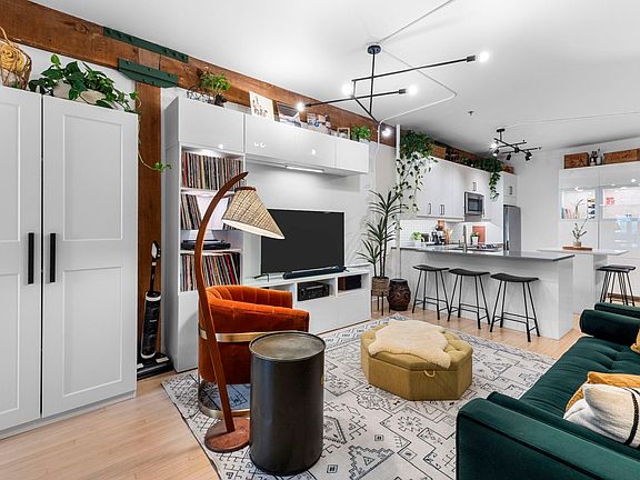 Welcome to L'Atelier - an iconic loft conversion in the heart of vibrant Hastings Sunrise. This spacious 933 sq ft home offers an open-concept layout with endless configuration possibilities to suit your lifestyle. Soaring ceilings, large windows, and industrial charm make this a truly unique living space. Just steps to trendy cafes, breweries, parks, and shops, with Commercial Drive and Downtown less than a 10-minute bike ride away. Live where culture meets convenience in one of Vancouver's most dynamic neighborhoods. Perfect for creatives, professionals, or anyone seeking an urban lifestyle with character. Kitchen Update in 2022, Bathroom in 2023, with beautiful refinished original hardwood flooring. An absolute must see! Open House Oct 4 and 5 12-2