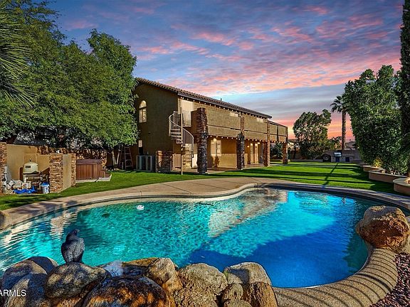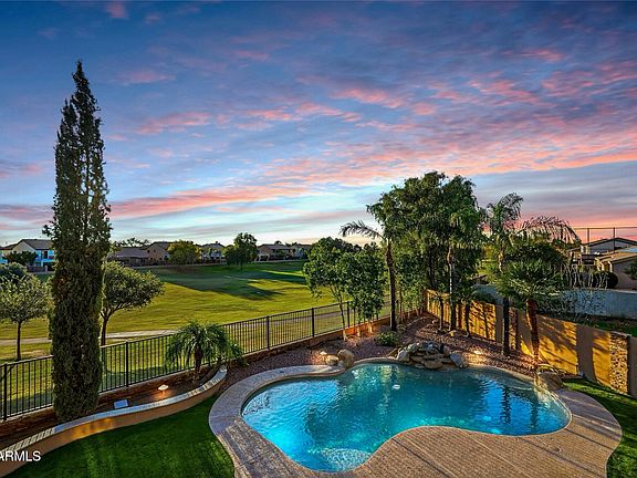 The backyard feels like your own private resort: a sparkling pool with water feature, relaxing jacuzzi, built-in BBQ, fire pit with seating, and fresh, vibrant grass surrounded by immaculate landscaping. Whether you're hosting gatherings or enjoying peaceful evenings under the Arizona sky, the possibilities for memories here are endless. Living in Augusta Ranch means more than just a beautiful home, it's a lifestyle. The community offers state-of-the-art Toptracer technology, glow-in-the-dark golf, fun family nights, an on-site restaurant and bar, corn hole tournaments, and so much more. There's always something to enjoy right in your own neighborhood.