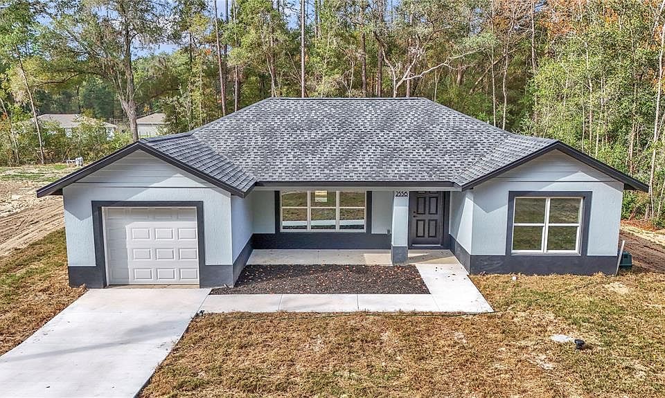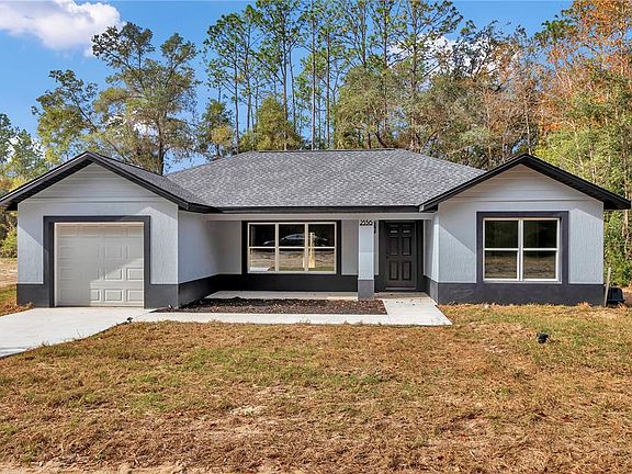 Looking for a new construction home that blends modern comfort with peaceful outdoor space? This beautifully built, move-in ready 3-bedroom, 2-bathroom home located in Rainbow Park Estates sits on an oversized lot, offering the perfect mix of fresh, contemporary living and a spacious setting. Step inside to an inviting, light-filled layout designed for easy living and effortless entertaining. The open-concept kitchen and great room create a natural gathering space, while the split bedroom floor plan gives everyone the privacy they need. The owner’s suite feels like a quiet retreat with a beautifully finished bathroom and a spacious walk-in closet. Two additional bedrooms offer flexibility for family, guests, a home office, or a hobby room. Throughout the home, you’ll find granite countertops, luxury wood-look vinyl flooring, and modern fixtures that elevate the design and provide long-lasting style. Outside, the oversized lot provides endless possibilities—add a pool, build a garden, create a play area, or simply enjoy the extra elbow room. Whether you’re dreaming of a peaceful place to start fresh or a home with space to personalize, this property delivers. You’ll enjoy the balance of a quiet setting with quick access to major attractions and amenities. Within a short 15-minute drive, you’ll find the World Equestrian Center, Juliette Falls Golf Course, and Rainbow Springs—perfect for those who love equestrian events, golfing, and outdoor adventures.