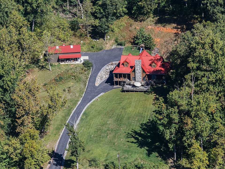 Two story log home with finished basement and garage. Timber framed roof with standing seam metal roof. Two car garage and 1400 Sq ft detached work shop/garage. Twelve and ten foot ceilings in the house and fourteen foot ceiling in detached garage/work shop. Complete wrap around porch, and 500 sf deck.