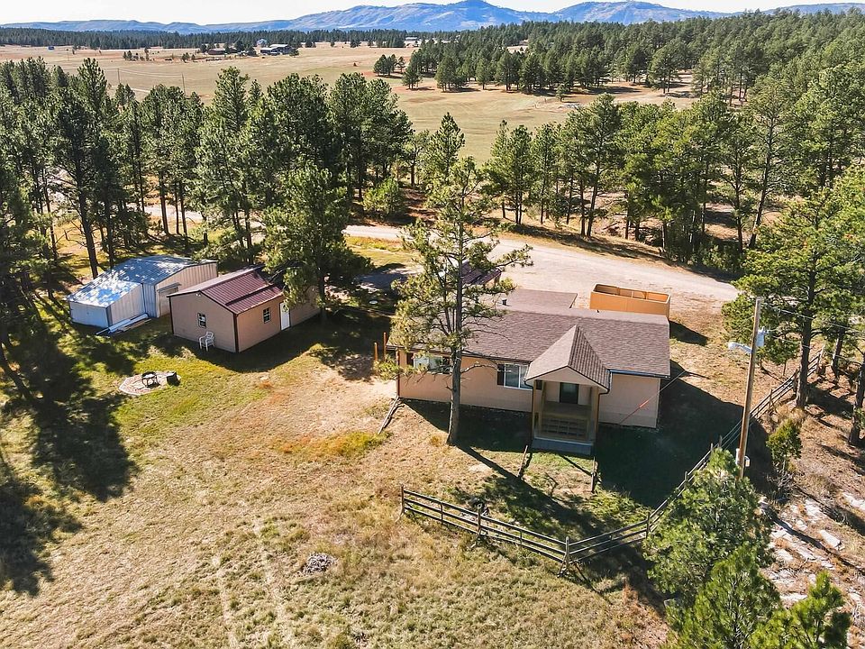 Listed by Tom Blain, Keller Williams Realty Black Hills - 605-716-1111 This home is move-in ready and perfectly designed for one-level living. This charming ranchette offers peace, privacy, and modern comfort in a stunning, secluded setting among the trees of the Southern Black Hills. Located in desirable Custer County, SD, this affordable homestead is ideal as a full-time residence, weekend getaway, or seasonal hunting cabin. The home features a perfect floorplan with numerous major updates since 2023, including new skirting, siding, roof, a newer water heater, and central A/C condenser, and much more. Enjoy both comfort and convenience with the manual backup generator in place, a water cistern with local/convenient water hauling available, and reasonable property taxes. Step outside to enjoy covered front and rear decks/patios and explore 6.779 partially fenced acres—ideal for your livestock or poultry. Want a large garden? Great, there is excellent easterly and southern exposure. Want to go off grid? Consider a full solar power source. The conveniently located 30x20 detached garage includes a concrete floor, power, a remote opener, plus an additional outbuilding for use as a shop or barn. With the new concrete parking pad at the front door, your entrance to the home is just a few steps away. This property is a true private hideaway with scenic views, country charm, and easy access to Custer, SD; Newcastle, WY; Jewel Cave; and prime hunting areas. Don’t miss this rare opportunity to own a turn-key retreat in the Black Hills! YouTube: "25564 Old Cabin Rd"