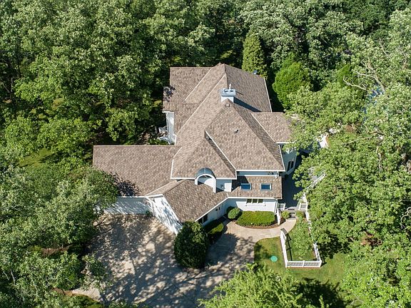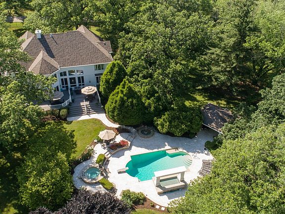 Privacy at its finest with this gated luxury estate on just shy of 6 acres in Elwood. This beauty offers 3 bedroom/ 5.5 bathrooms full finished basement, four car heated garage, in ground pool, and a private pond. Enter the two story foyer that separates a formal dining room and living room. Huge vaulted ceiling family room with fireplace and beautiful views of the backyard. Eat in chef's kitchen offers granite countertops, custom cabinets, high end appliances, and center island with breakfast bar & 2 refrigerator drawers. Sitting area with natural light off of the kitchen is a true bonus room to this open concept main level. The executive office/study is perfect for working remotely. Main level also offers a full bathroom, powder room, and laundry room. Master bedroom with walk in closet and ensuite with jacuzzi tub, double vanity, and stand in shower. Second level also offers two large bedrooms with WIC and private bathrooms. The loft area overlooks the family room, but can easily be a 4th bedroom if needed. The opportunities are endless with this finished basement. The wet bar has additional kitchen appliances which makes entertain a breeze. The basement also offers entertainment area, game room, full bathroom, storage, fireplace, and more. Heated 4 car garage with car lift, epoxy floors, utility sink, and stairs to the basement. Well manicured property with professional landscaping, trex deck, 2 car detached equipment building, & garden shed. The pool area and pond give this estate signature statement pieces. Enter the spa like pool area with an in ground pool, hot tub, waterfall, and a portico with seating & gas log fireplace. Pond offers paddle boat, fountain, waterfall, and diving board. Additional Features: fully fenced and gated property, newer roof and furnaces, additional attic insulation, updated surround sound system, sprinkler system, and much more! You will not want to miss this one!