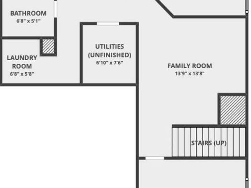 Bedrooms, a full bathroom, large family room and laundry room but no Kitchen.