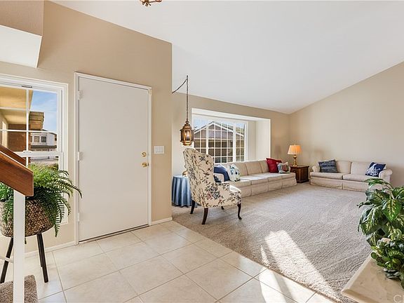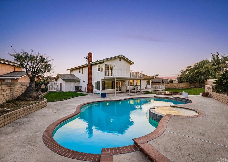 BEAUTIFULLY UPDATED POOL HOME SITUATED ON A PRIME LOT IN A QUIET CUL-DE-SAC. Professionally manicured front landscaping w/tiered block planters, grass & a spacious concrete driveway. A covered walkway leads to the front door & tiled entry that opens to a spacious living rm w/brand new carpeting, a large picture window, vaulted ceilings & an adjacent formal dining rm w/backyard views & a new chandelier. The kitchen features updated white cabinetry, custom tiled countertops, stainless appliances, recessed lighting, a breakfast nook overlooking the family rm & windows that look out to the backyard. Family rm offers tiled floors, a white brick fireplace, wet bar, designer ceiling fan & French doors to the backyard. There is a downstairs powder room, indoor laundry & direct access to the three car garage. Upstairs you'll find all brand new carpet & an oversized master bedroom w/a walk-in closet & a sliding door to a large view balcony overlooking the backyard, hills & mountains. Master bath offers dual sinks & a shower/jetted tub w/glass enclosure. Three additional bedrooms upstairs plus a hall bath w/dual sinks & a shower/tub w/glass doors. The pie shaped backyard is one of the larger yards in the neighborhood featuring a recently refinished pool & spa w/brick coping, brick fire pit w/seating, two grass areas, a covered patio, a second concrete patio, planters around perimeter & block walls on all sides. Roof has been redone & the home has been meticulously taken care of.