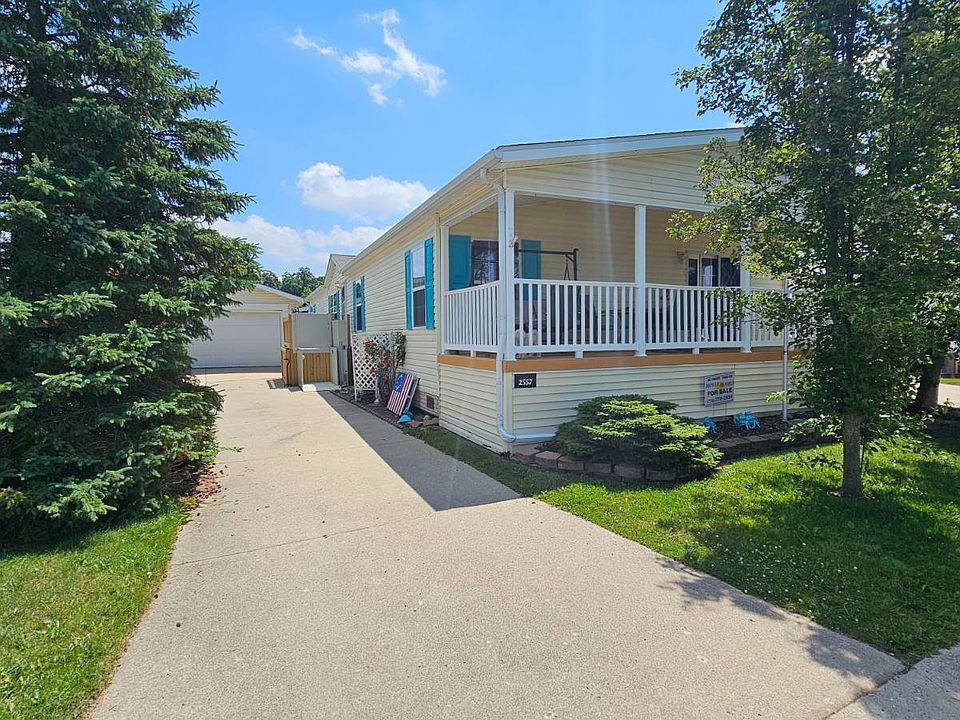 Take a look at this terrific home! Here are some of the great exterior features. There is lots of extra parking, privacy hedges, landscaping, central air, a wheelchair lift that typically costs more than $5,000, and a 10x6 main entry deck built in 2024. Interior features include full drywall, a family room & living room, spacious kitchen with plenty of cabinets and countertop area, formal dining area, primary bedroom with a retreat/study, glamour bathroom with garden tub, separate shower and double sinks, all bedrooms have walk-in closets, a family room doorwall that leads to the attached covered deck, large utility room with cabinets, countertop space and a wash tub. All the kitchen appliances stay along with the washer and dryer set. The roof was re-shingled in 2017.