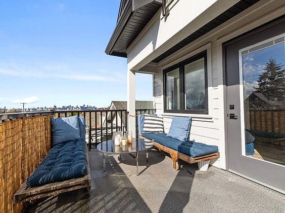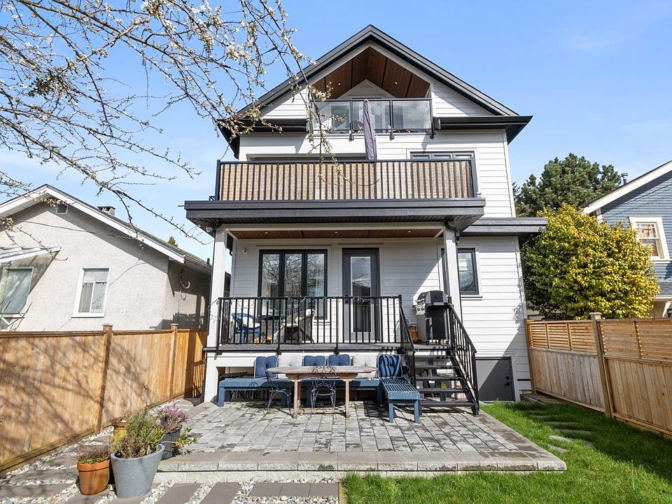 Impeccably maintained by its original owner, this 3 bed, 3 bath turnkey home offers the perfect blend of luxury, privacy, and city views. Boasting generous outdoor living with balconies on every level, a massive private patio on the second floor, and a fully fenced unusually large yard. Enjoy stunning downtown Vancouver views from multiple vantage points. Inside, the high-end kitchen boasts integrated Fisher & Paykel appliances with custom panels, complemented by Kohler fixtures and elegant Spanish tile throughout. A custom pergola entrance and beautifully finished pavers complete this rare, move-in-ready gem. EV can be charged in secure parking pad behind motorized gate, or in private garage.