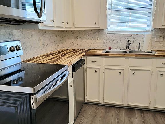 Discover a beautifully updated 3-bedroom, 2-bathroom brick home offering comfortable living. With a generous 1,661sf of living space, this residence provides ample room for relaxation and entertainment. Set in a serene neighborhood, it features a newly installed roof, fresh paint, and captivating laminate flooring. As you enter, a sense of warmth welcomes you. The owner's suite offers a private haven, complete with dual vanity and a spacious walk-in closet. The heart of the home is the remodeled kitchen, showcasing new countertops, and inclusive appliances. Effortlessly prepare meals and create cherished memories in the adjacent dining area. The living room boasts a charming brick fireplace, adding character to the space. Conveniently located off the kitchen, a large laundry room off the kitchen. Two additional bedrooms offer versatility, catering to family, guests, or a home office. A covered patio invites BBQs, while the expansive partially fenced yard is perfect for kids and pets. Positioned strategically, this residence guarantees a sanctuary you'll adore for years. Don't miss out on making it yours - contact us today to schedule a private tour and experience the comfort, style, and convenience of this beautifully remodeled home.