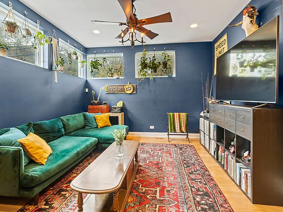 Beautifully sun-filled duplex down. 2 bed, 2 bath home with 12-foot ceilings, hardwood floors, and a seamless open layout. The kitchen features granite countertops, 42" cabinets, and stainless appliances. The lower level offers a cozy retreat with a gas fireplace, full bath, and great storage. Recent updates include a new washer/dryer, microwave, electrical panel, and water heater. Enjoy a shared rooftop deck over the garage, complete with grill and seating. The home includes an attached garage space plus a driveway spot-an unbeatable perk in the city. Just steps to Division Street's vibrant restaurants and coffee shops, in the heart of East Humbolt Park, easily walk to both Wicker Park and Ukrainian Village-this home pairs vintage charm with modern convenience in one of Chicago's most walkable areas.