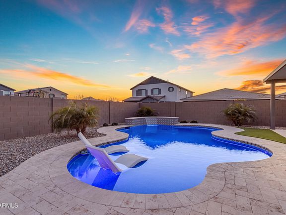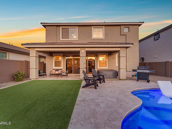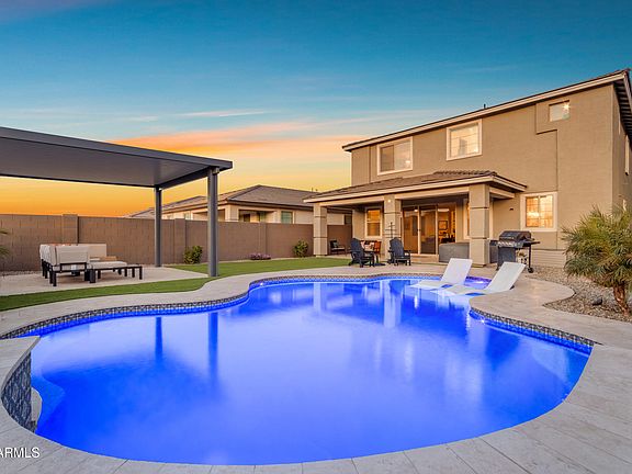Welcome Home to 25582 S. 224th Way in Queen Creek, AZ. This one checks all the boxes! This beautiful 2,923 sq. ft. home was built in 2022 and offers 5 bedrooms & 4 full baths, featuring an open floor plan with wood plank tile flooring and a gourmet kitchen perfect for entertaining. The loft upstairs adds extra living space, while the upstairs en suite provides privacy for guests. Enjoy built-in indoor & outdoor speakers, an RV gate, and a spacious backyard with a pool and pergola—ideal for gatherings! Just like new and located near shopping, the NEW Costco, entertainment, golfing, hiking, Schnepf Farms, The Olive Mill and all that Queen Creek has to offer. Don't miss out on this incredible home!