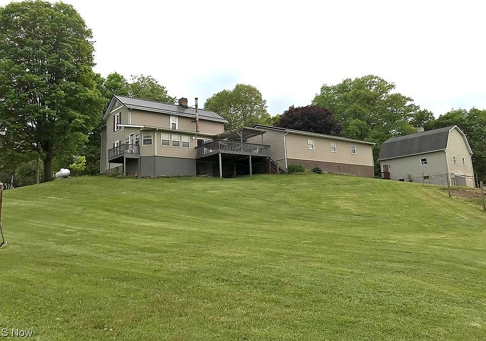Country mini farm with terrific views. Two-story home with three car attached garage having a spacious oak kitchen with an abundance of cabinets and wood floors. Family room with vaulted ceiling, neutral decor, and walkout to outside balcony deck. The home also features a dining room, living room, 1st-floor laundry, 3 bedrooms, and 2 full baths. Numerous updates and low utilities with wood burner. Electric/wood hot water heat. Plus, a three-story bank barn that has electric and water, with a main level two-bay garage and work area, upper-level storage, and lower level walk out with 3 horse stalls. (Updates: water heater 2 years, kitchen countertops and backsplash 2 years, new propane furnace and air conditioning and ductwork last year).