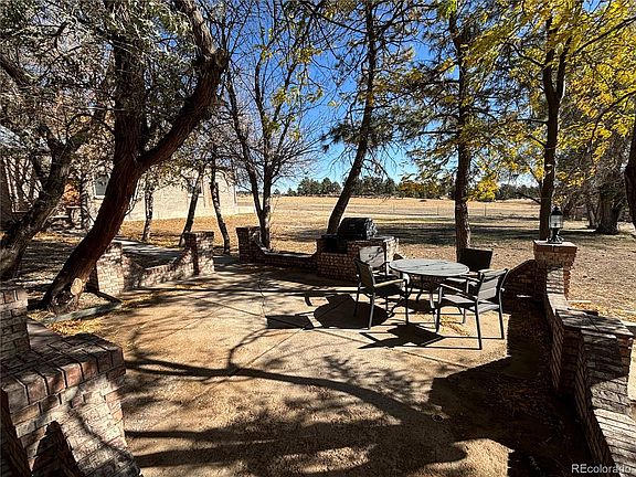 Great horse property features a ranch style home with huge shop and barn! This home has a low maintenance brick exterior and offers 3 bedrooms and 2 full bathrooms. The open floor plan features a large open kitchen, sunroom with title floors and lots of natural light and living room with wood burning fireplace. The brick work on this property is absolutely amazing and there is a fully bricked court yard area. The massive 50 x 80 shop is bricked on several sides and features a concrete floor, bathroom, water and 220 power. The horse barn is approximately 40 x 60 and has four stalls, tack room, power and water. There is also a 12 x 48 ft shed row with tack room. The three sided shed houses a "Generac" generator that provides back up power for the home and the shop and there is also an underground storm cellar. The horse amenities include a round pen, pipe corrals and property is cross fenced into several pastures. The property is located on a county maintained road and within the Elbert School District which offers a newer "State of the Art" school. This property has no covenants, domestic well and new septic is in process. Don't miss this opportunity. This property has so much to offer for the price! All measurements are approximate