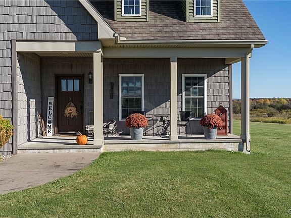 A rare find in Jefferson County! This stunning custom built home sits on a serene 2.57 acres just minutes away from Watertown and Fort Drum. Built in 2010, the home offers 3 bedrooms, 2.5 baths, and nearly 2,900 sqft of open-concept living space with engineered hardwood floors throughout. The heart of the home is a stunning modern kitchen with Corian counters, sleek cabinetry, and an island that seamlessly flows into the vaulted dining and living area. Ideal space for entertaining and everyday living.