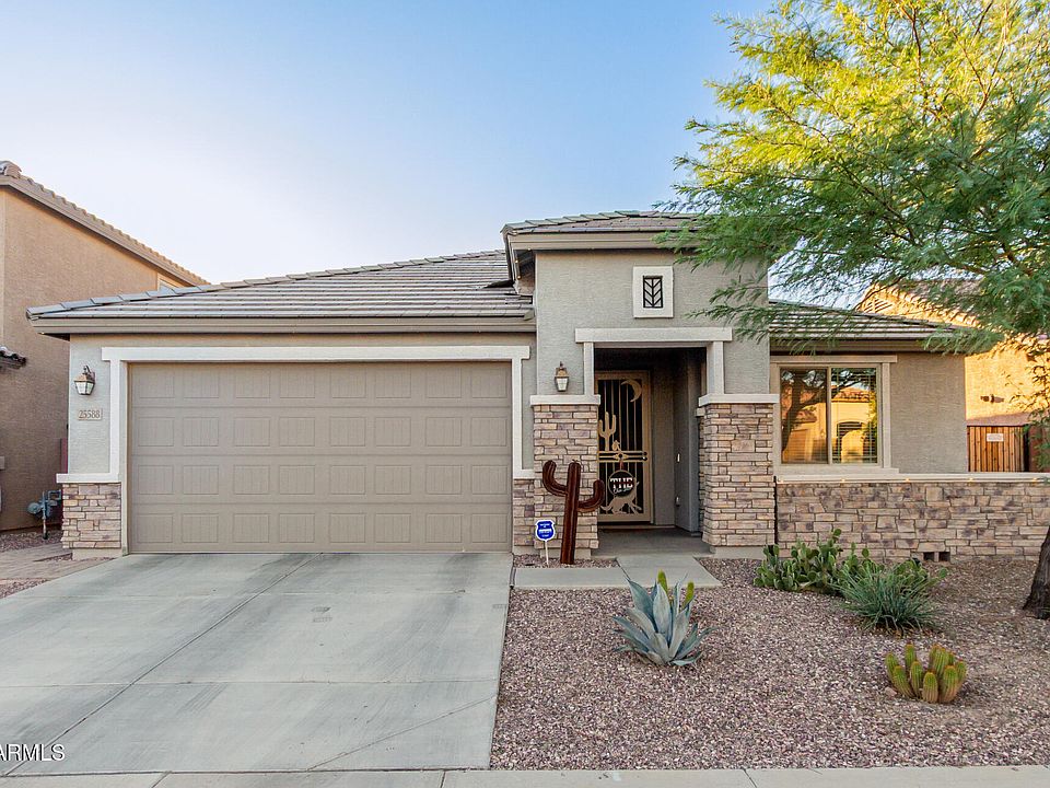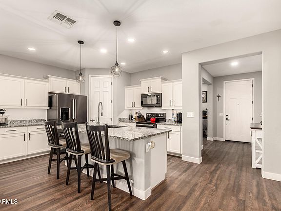 Beautifully updated 3 bed, 2 bath home with bonus room for office or 4th bedroom. Enjoy new luxury vinyl plank flooring (2024), upgraded HVAC (2023), and a $21K solar system that will be paid off at closing, plus EV charger and permanent exterior lighting. Kitchen features granite counters, double ovens, and all appliances included. Primary suite offers walk-in shower and large closet. Low-maintenance yard with turf and paver patio. 2.5-car garage includes epoxy floors, cabinets, and ceiling racks. Washer & dryer stay—move-in ready!