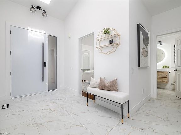 Welcome to this rare, all-brick bungaloft in the prestigious Millcroft neighbourhood - a highly sought-after layout offering luxurious living with soaring 17-ft ceilings, floor-to-ceiling windows, and a dramatic open-concept design. The main floor showcases a sunlit great room with skylight and cozy gas fireplace. The primary bedroom connects seamlessly to a spa-inspired 5-piece ensuite retreat, complete with a walk-out to the deck and a spacious walk-in closet. A second main-floor bedroom, full 3-piece bath, formal dining room with Butler’s pantry, home office with built-in closet (flexible as a third bedroom), laundry room, and a well-equipped eat-in kitchen with wall pantry complete the main level. Striking floating stairs with glass railings lead to the upper level, which offers an office nook, three generously sized bedrooms, and a full 4-piece bath - perfect for family or guests. The fully fenced backyard is designed for outdoor enjoyment with a large deck, gazebo, and hot tub. The unfinished basement spans over 1,800 sq ft and is ready to be transformed into the ultimate rec room, gym, media lounge, or custom space. A rare opportunity that blends elegance, space, and lifestyle.
