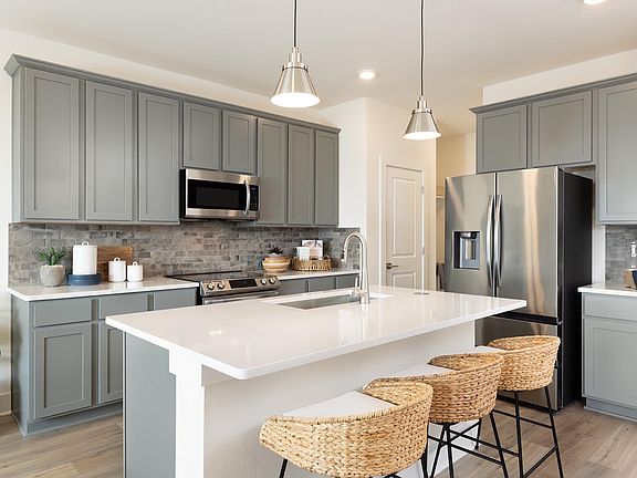 The Ellie plan introduces family-style living across 1,693 square feet of space. This three-bedroom, two-and-one-half bathroom plan maximizes moments to mingle without compromising on spaces to decompress. An open-concept first floor boasts a breezy dining area and stunning kitchen with island, while a covered back porch provides the perfect spot for anytime hangouts.