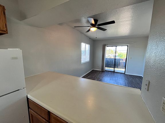 Private balconyUpdated fixturesCeiling fansPlank flooringElectric range