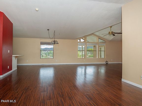 Welcome to this lovely 4-bedroom, 2-bathroom home with a split floor plan offering 2,177 square feet of living space on nearly a half-acre. The bright & open layout boasts tall ceilings & clerestory windows. Two tone paint with beautiful wood laminate floors, celling fans, 2'' horizontal blinds & skylights throughout. A spacious kitchen includes a center island, breakfast bar, ample pantry & cozy nook. Master bedroom with his & her closets. The master bath features include a garden tub, dual vanities, a shower, & a separate toilet room. Massive covered patio in the backyard looking out to the Bradshaw mountains. Backyard is fenced with sidewalks connecting to front patio. Within walking distance to Humboldt Elementary School. This home is ideal for both comfortable living & entertaining.