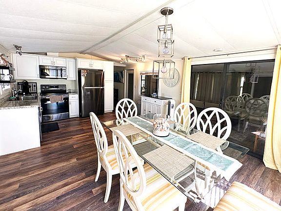 This charming 960 square foot manufactured home located in Bonita Terra features 1 bedroom and 1 bathroom, making it the perfect cozy retreat for those looking to downsize or enjoy a low-maintenance lifestyle. Built in 1986 by Bays, this home boasts a spacious living area, a functional kitchen with modern appliances, and a quaint dining area. The bedroom offers ample closet space and the bathroom includes a stall shower. Outside, there is a small patio for enjoying the Florida sunshine and a covered carport for convenient parking. There is also a washer and dryer in the outside shed. The roof was FULLY REPLACED in 2020 with new flooring and subfloor added throughout. All new widows were added to the front and rear lanai's (yes, there are 2). The appliances have been updated as well. The driveway is stamped concrete and the home comes with a 2016 Club Car golf cart. The homes comes fully furnished and turn key. Leased Land.Bonita Terra is a welcoming community located in Bonita Springs, FL, offering residents a range of amenities to enjoy. From a sparkling community pool and clubhouse to organized social events and activities, residents can easily connect with neighbors and make lasting friendships. The community is conveniently located near shopping centers, restaurants, and local attractions, making it easy to explore all that Bonita Springs has to offer. With meticulously maintained grounds and a relaxing atmosphere, Bonita Terra is the perfect place to call home.
