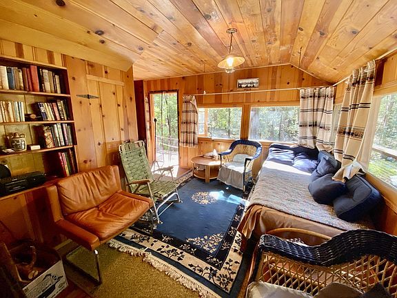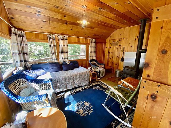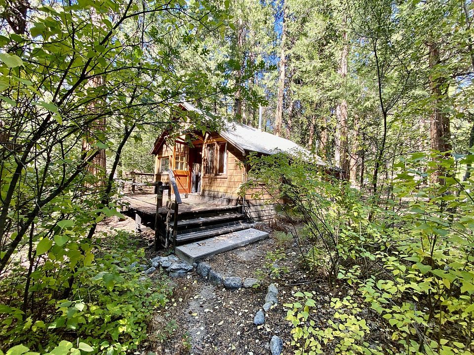 As you walk down the rock lined path feel yourself being transported to a simpler time: Yesteryear. Filtered light, the babbling creek, rustling leaves and chirping birds invite you home. This 1940's cabin is built right on the creek featuring a wood burning stove in the living room. The eat in kitchen feeds your vintage vibes with both the stove and fridge. Ample shelving along with nooks and crannies provide all the storage space you'll need. The 3/4 bathroom can be found right off the kitchen next to the bedroom. A walk in closet, vaulted ceilings, and windows looking onto the creek in the bedroom bid you to stay awhile. If extra space is what you need the sleeping cabin just a stones throw away is there for you. The large room offers space for your overnight guests, home office, art studio or your hearts desire. The sleeping cabin features it's own 3/4 bathroom so no tip-toeing is needed. A bonus is the close proximity to town making this large lot a dream come true. Join us and take a stroll back in time.