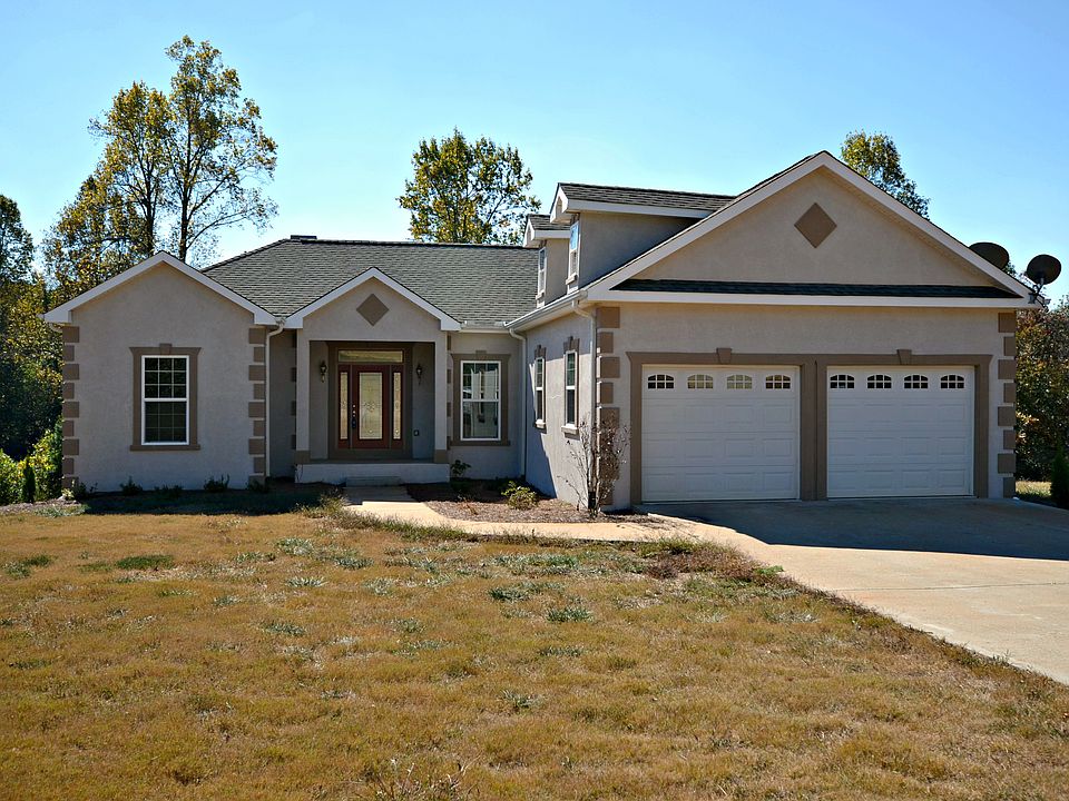 FRESH PAINT INSIDE AND OUT! MOVE-IN READY! Classy stucco 3/2 ranch on 1 acre and full unfinished basement. Open floor plan, master on the main, open kitchen/living rm with amazing cabinets, all appliances, vaulted ceilings, place to put a fireplace. It already has the chimney ready. Split floor-plan, Trey ceiling in master bedroom, elegant master bathroom with marble, double sink vanity, walk-in closet, jetted tub, separate shower, beautiful design. Spacious bedrooms with ceiling fans. 2 car garage, deck, amazing yard with new shrubs, front porch. Unfinished basement stubbed for a bathroom and has 1 room partially finished. Storm room with concrete walls and metal/concrete ceiling. Seller lives out of state and wants to sell quickly. Bring offers.