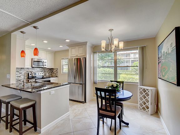 1st floor Completely updated corner unit! Full 2br/2ba! Open kitchen with white cabinets & stunning granite makes this unit feel very light and bright! Garden views that back up to the pool in the distance give you peace and quite from the enclosed patio. Complex features beautiful clubhouse that includes active theatre and event schedule, Indoor AND outdoor pools for full year around use! Additional amenities include Tennis, fitness, and Courtesy busses to shopping and dining. Century village is the ultimate in affordable condo style 55+ . condo!