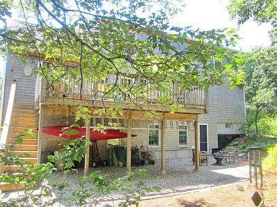 Shows like new. You will love this three bedroom Cape with first floor master, private tile bath, sunny open kitchen/ dining area with sliders to the deck overlooking the wooded back yard. First floor laundry / powder room, living room with fireplace and 2 bedrooms and full tile bath up. Walk out basement offers perfect sunny living space for family room. One car garage under. Excellent location easy access to Harwich Center, Thompson Field, bike trail and beach.