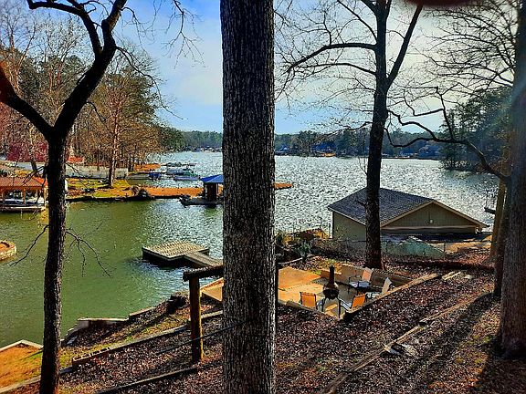 Water front home and fully furnished with a beautiful, elevated view of the Tussahaw area of Jackson Lake tucked slightly back from big water.