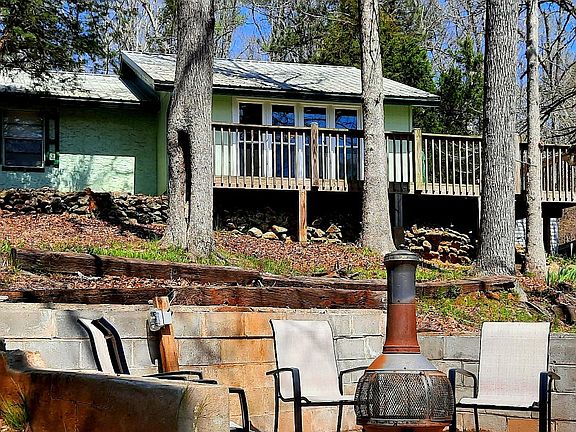 Water front homeLarge wrap-around deckChiminea near the waterfront
