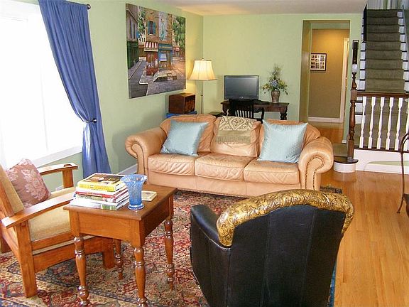 Simply stunning 4BR/2.1BA sited on a private, serene lot with new landscaping, driveway and redesigned front yard with curb appeal to spare! Offering 2,200 square feet, you'll find more than enough room to stretch out here. Step inside the impressive entry with leaded glass sidelights, bulls eye molding and guest closet. Gleaming hardwood flooring can be found in the spacious living room, formal dining room with bay window and eat-in kitchen. Providing plenty of space to prepare any size meal, the kitchen offers recessed lighting, new granite countertops, maple cabinetry and a breakfast bar. Perfect for entertaining or relaxing, the family room boasts a woodburning fireplace with tile surround, sliding glass door to the patio and French doors to the main level bedroom. Completing the first floor is a powder room with tile floor, pedestal sink, chair rail & beadboard plus the laundry room with utility sink. Upstairs, you'll find 3 additional bedrooms including the master suite with walk-in closet & wall closet. Unwind in the private master bath complete with tile floor and double vanities. All of the bedrooms include the comfort and convenience of lighted paddle fans. Enjoy the serene backyard setting complete with new garden. Plus you're within 1 mile of some of the best elementary & middle schools in the state!