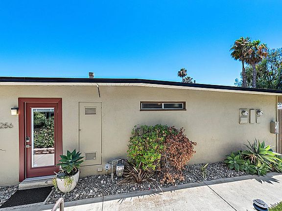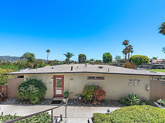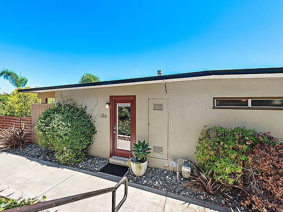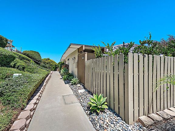 Location for the price doesn't get much better than this. Nestled in the Vista Del Gado community designed by renowned architect Chris Abel, this mid-century modern home is sure to impress. Upon entering, the home immediately warms the senses with its natural wood beamed ceilings, white brick accent wall, and engineered hardwood flooring throughout. The main living space is open to the remodeled kitchen with large peninsula / bar top, quartz counters, and stainless steel appliances. The living area flows seamlessly out to the very private yard, enhanced with green landscaping and concrete patio. The newly-remodeled full bath exudes a sleek, modern look with floor to ceiling porcelain tile, floating vanity, pendant lights, and tub/shower with custom glass door. The generously-sized master and guest bedroom both have sliding doors out to a second yard area, also landscaped and providing a private sitting area. Other notable features of this home include: Nu-Flow epoxy pipe coating, high-profile baseboards, custom paint colors, skylights, sliding barn door at laundry closet, energy efficient dual-paned windows and sliding doors, newer closet doors, roller shades, and drip irrigation to landscaping. The community features a 1960's vibe clubhouse with saltwater pool (solar heated), a reserved parking space plus one-car detached garage, and abundant guest parking. 1/2 mile to the beach and PCH, near downtown SC and famous beaches, 5-min to DP Harbor - this home is a must see.