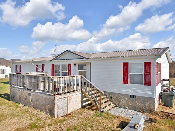 Welcome to your future home in New Market! This manufactured home on a permanent foundation sits on just over an acre of flat to gentle rolling land. Inside, it's all about comfortable living. This home features three spacious bedrooms and two bathrooms. Unwind in your garden tub or step into the convenience of a walk-in shower to wash away the day. The layout seamlessly connects the large living room, dining room and kitchen, making it the perfect setup for kicking back after a long day or enjoying time with friends and family. Natural light spills in, showing off the modern touches and giving the whole place a warm, welcoming vibe. Enjoy a chilly night by the wood burning fireplace or with plenty of yard space- you have the perfect spot to kick back and soak in the surroundings as well as a large front deck to soak in those beautiful mountain views. Tucked away but not too far from the action, it's a hop, skip, and a jump from Knoxville, Sevierville, Dandridge and Jefferson City so commuting is a breeze, and you have a front-row seat to the best of both worlds - city convenience and your own slice of country paradise. Drone photography used for listing.