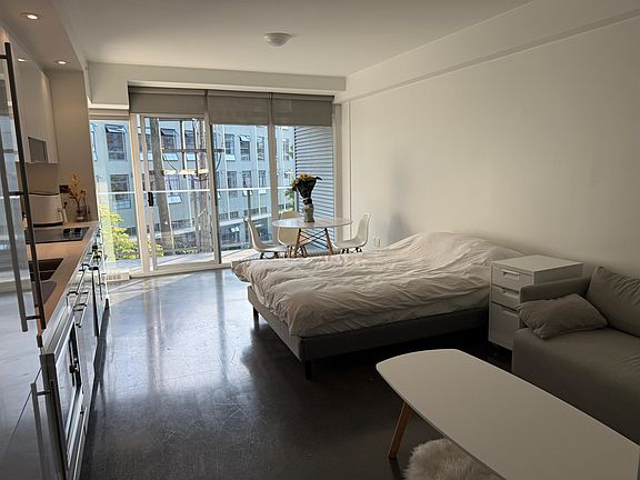 Furnished 500 sq.ft. studio loft in the award-winning Jacobsen building. This open-concept unit features polished concrete floors, over-height ceilings, and modern furniture perfect for students, artists, or professionals working in the neighborhood. Just steps from Emily Carr University, Olympic Village, & excellent transit. The space includes a full kitchen with stainless steel appliances (dishwasher, stove, fridge, microwave), in-suite washer/dryer, spa-inspired bathroom, and a private balcony. Includes 1 secure parking stall! The building boasts a fully equipped gym, bike room, workshop/maker space, and gallery-style party room. Ideal for artists and professionals looking to live in the heart of Mount Pleasant. **No Smoking - No Pet**