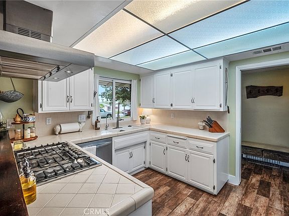 Welcome to this charming home located in the heart of Corona! As you approach the property, you'll immediately notice its great curb appeal with a lush green front lawn, mature trees and exposed brick adding to it's charm. Step inside to find updated wood-style tile floors that lend a warm and inviting feel. The kitchen hosts ample storage and a 5 burner cook top conveniently next to the breakfast bar that sits just off of the dining room. Gather in the inviting family room flooded by natural light featuring a stunning brick fireplace. Enjoy a nice evening breeze on the back patio overlooking the mature landscape and spacious grassy yard. Overall, this home is the perfect combination of charm and functional inviting space. Its great curb appeal, private backyard, updated wood-style tile floors and centralized Corona location make it a must-see.