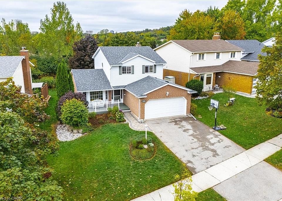 Check everything off your list! Located on a mature boulevard steps from the Grand River, this updated family home is situated just steps from the parks and trails of beautiful Chicopee! Welcome inside the foyer, open to a bright and oversized living room with vaulted ceiling, perfect for families who value living space and entertaining. The kitchen features timeless cabinetry and stainless appliances with trendy geometric backsplash. The separate dining room has a cozy fireplace and lovely backyard views of mature trees and the nearby Chicopee Vale trail. A garden door on this level leads to a huge deck that extends across the back of the home, and includes a handy gas line for your BBQ. Once back inside, the main level also has a convenient laundry room and powder room. Upstairs are three large bedrooms, including the primary with dual closets and an ensuite featuring granite vanity and separate tub and shower. An additional updated four piece bathroom is down the hall. BONUS! The finished lower level with gas fireplace is perfect for hosting extended family and has a huge recreation room with additional bedroom or office and large finished walk-in storage area. Lovely curb appeal and double car garage. Minutes from excellent schools, popular shopping, restaurants and the 401. A spacious family home presenting an amazing opportunity in a fantastic neighbourhood!