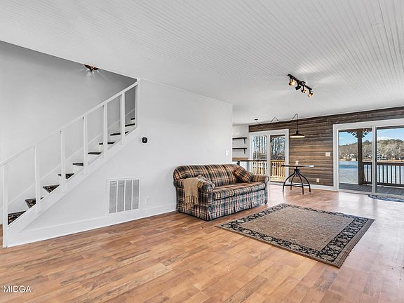 Tucked next to a peaceful cove, this captivating 3 bedroom, 2 bath home invites you to experience lakeside living. Interior of this home has undergone stunning transformation with a living area adorned with a stone fireplace. Dining area and kitchen offer views of the lake, making every meal a delightful experience. Spacious bedroom on lower level is complimented by a renovated bathroom featuring a tile shower. Upstairs you will discover two large bedrooms, each offering fabulous views of the lake. Hall bathroom has been thoughtfully updated to enhance the luxury of comfort of this home. Step outside to a generously-sized deck that extends your living space. Perfect for entertaining or enjoying quiet moments, the deck offers a great area to soak in the beauty of the lake. This home provides ideal setting for floating and casual relaxation on the lake. Renovated dock is a haven for lakeside activities, promising breathtaking views and memorable moments. Schedule your tour to explore the beauty and comfort this lakeside gem has to offer.