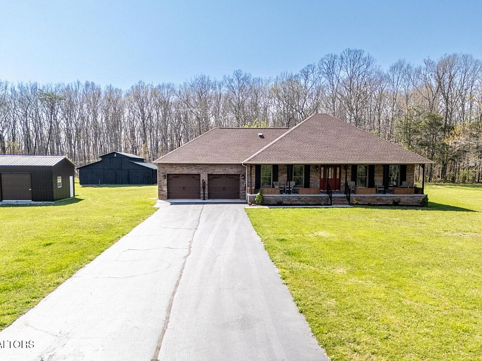 HUGE PRICE CUT!! The seller has an offer on a smaller property and is motivated to sell. Welcome home to your private retreat. As you drive down the private lane, you're surrounded by nature—it feels like your own piece of paradise. This 3-bedroom, 2-bath all-brick home sits on 15 acres of both wooded and cleared land, offering the perfect blend of seclusion and usability. Inside, you'll find 2,040 sq ft of living space featuring hardwood and tile flooring throughout. The open floor plan provides a warm, inviting atmosphere for everyday living and entertaining. Large spacious kitchen with SS appliances, a gas stove for wonderful cooking experiences, and ample cabinetry for all your storage needs. Stay comfortable year-round with energy-efficient gas heat and AC. On cooler days, cozy up by the fireplace, complete with a remote starter and easy-to-use controls. Enjoy the ease and beauty of luxury vinyl windows that tilt in for effortless cleaning. Large deck perfect for entertaining guest and watching all the wildlife that make an appearance. This property is ideal for animal lovers or hobbyists, with a barn that includes 2 stalls, 2 tack rooms, a workshop with 220v electric, large roll up door, LED High Bay lights, plus a storage shed for all your equipment and tools. Oversized garage with a storm shelter. Acreage for additional homes. Whether you're looking for space to roam, a place to keep horses, or simply peaceful country living, this property checks all the boxes!