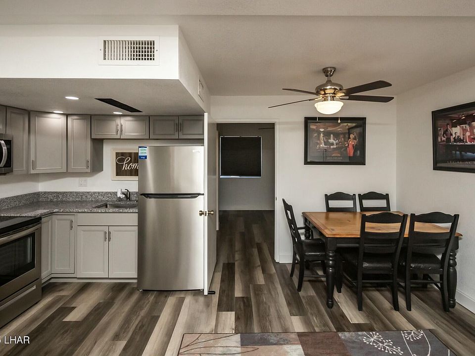 Adorable 1 bedroom Corner Unit located in the Xanadu North Condo Complex. This unit was remodeled in 2023 by the prior owner. Updated cabinets, flooring, appliances, and bathroom vanity. Location is super private with the only neighbor being the unit above you. No attached walls with anyone else in the complex. Community heated pool and spa area with BBQ's. This complex also has elevators and the staircase is right next to the unit. SS Appliances and upgraded vinyl flooring throughout. Refrigerator is also included. Super cute and easy to show!