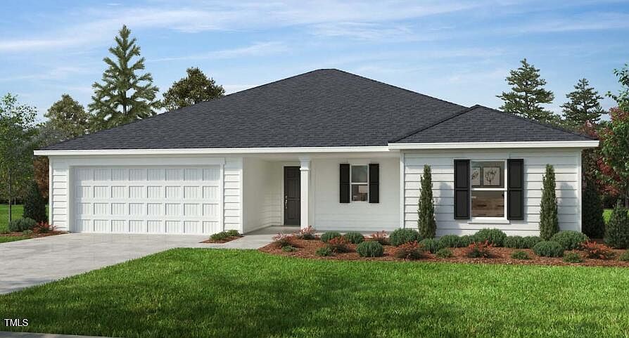 *Buildable Plan* Welcome to your dream home at 256 Matthew Meadow LANE., a stunning ranch-style, single-story residence in serene Elyse Meadows. This spacious home spans 1,910 square feet on a premium lot, boasting a larger backyard, ensuring privacy and natural beauty. This home is designed to be Energy Star and features three bedrooms plus an office/den, two full bathrooms, and a two-car garage. At the heart of the home is a large open kitchen equipped with pristine granite countertops, elegant Aristokraft Sinclair cabinets, and top-quality stainless-steel appliances, including a Whirlpool electric range and dishwasher. The primary bathroom offers a retreat with dual Moen Seena faucets, an extended vanity with Silestone countertops, and energy-efficient fixtures. This home is perfect for entertaining or relaxing outdoors, complemented by high-quality Layton Lake driftwood flooring, energy-efficient double-pane windows, a central HVAC system, and smart thermostat for enhanced energy management. Located just minutes from downtown Lillington and a short drive to RTP, Holly Springs and Apex. This home provides easy access to excellent recreational facilities and green spaces. Embrace the opportunity to create lasting memories in a home designed with your lifestyle in mind. Current Prices does not include Design Studio Options as home buyer may personalize.