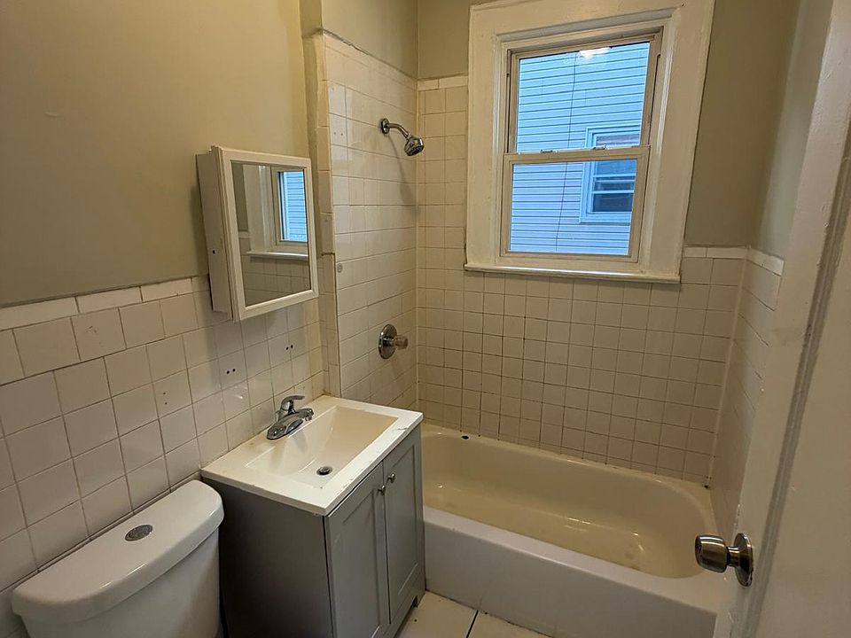 Modern kitchenFreshly renovated apartmentTrendy bathroomHardwood flooringSpacious living space