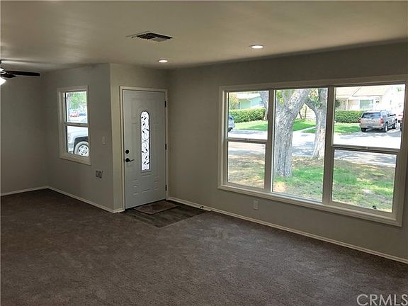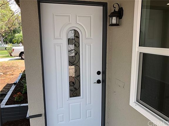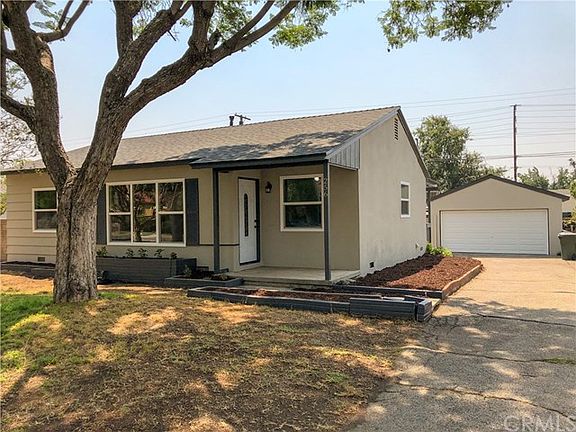 Back on market due to personal event of previous buyer. Lovely home in neat, quiet neighborhood of Upland. 3 bedrooms, 1 bathroom home with inside laundry along with just updated features such as: New paint inside and out, new flooring throughout, remodeled kitchen and bathroom with quartz/granite counter tops, new cabinets, new fixtures and faucets. Recessed lighting in living room and ceiling fan in dining area. The back yard is level and all usable with a covered patio. The garage is for two cars and has a roller door. Central A/C and forced air heat. Appears to be a new roof on both house and garage and appears to be a new A/C compressor.