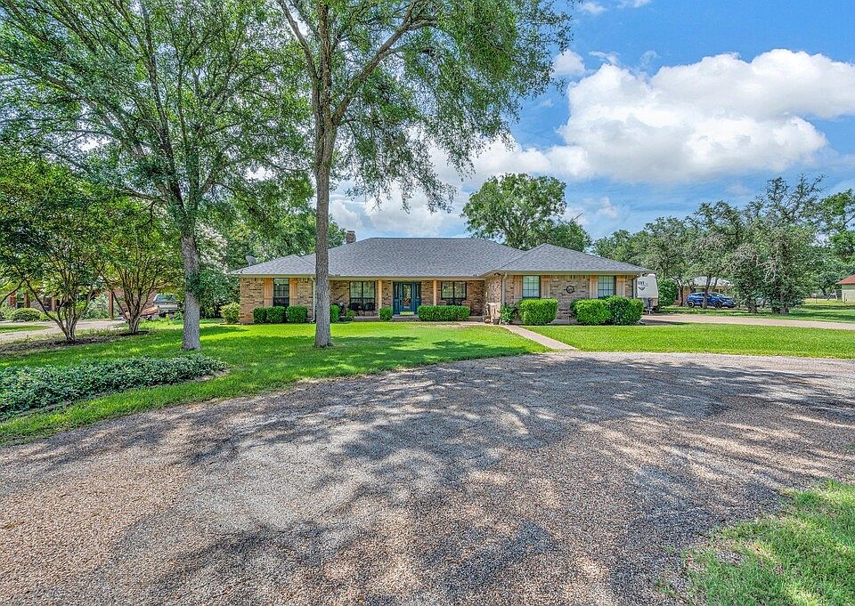 Additional parking is available with a circular drive and a straight drive for cars and an RV. Conveniently located with easy access to Highway 6, it's just an 18-mile commute to Waco, TX, and close to local schools. The quiet area is teeming with wildlife and backs up to a large wooded ranch. The well-established yard includes a sprinkler system and a 14x20 workshop/storage build