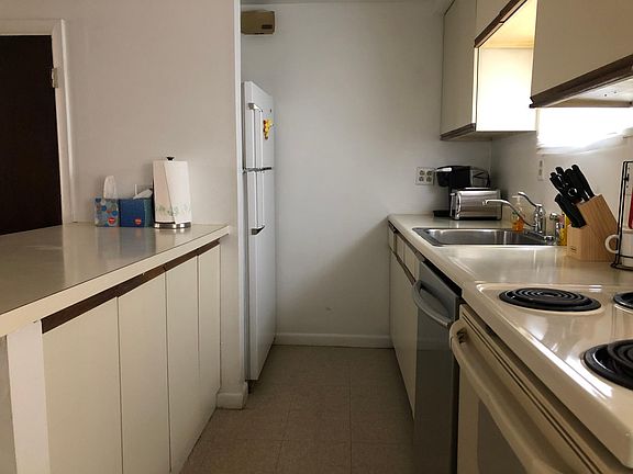 The property features hardwood floor throughout, full kitchen with dishwasher and kitchen island. Plenty of kitchen cabinets.