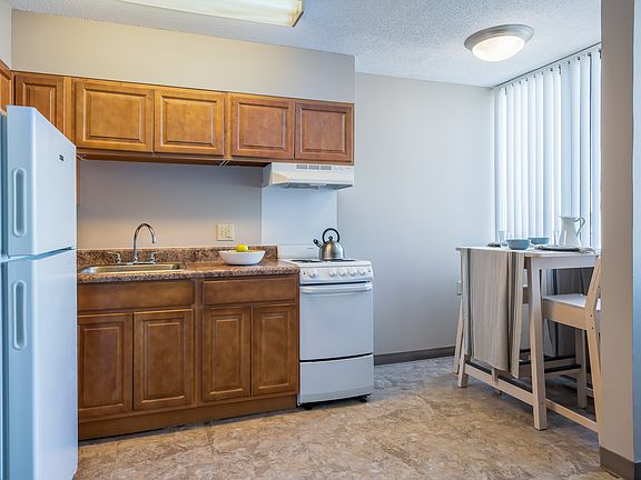 We have two floor plans at City View; take your choice of one of our spacious studio, or one-bedroom homes. Most units come with a private balcony for residents to sit out and enjoy the view of downtown and the Mississippi River. Residents will also enjoy socializing with one another in our large community room, or taking advantage of our on-site barber shop and sundry store. We offer covered, off-street parking and controlled building access for the comfort and safety of our residents.