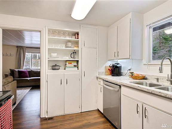 Easy commute, quiet area, on the border of Seattle and Burien - minutes to either downtown and airport, this remodel under $450k has everything. Don't miss this opportunity to own a large lot - room to garden, play, and let your pets roam. Upstairs bath and kitchen recently updated. New paint throughout this place is ready for you today. Carport for 2 cars and a big driveway fits all your toys! With a workshop and a wine cellar this place has everything. Come see this home and fall in love!